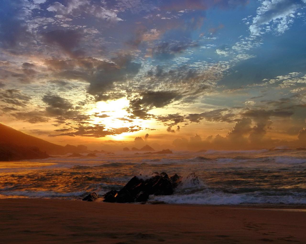 » Обои Закат на черных камнях