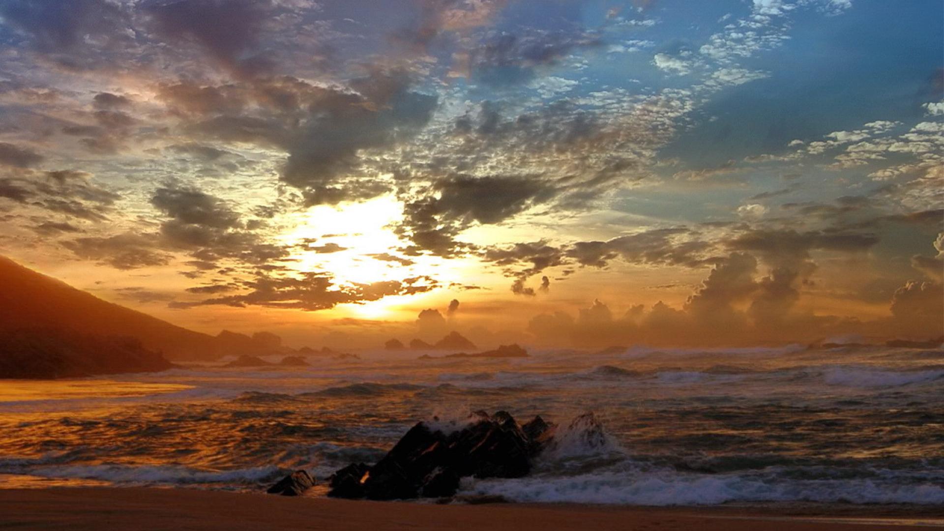 » Обои Закат на черных камнях