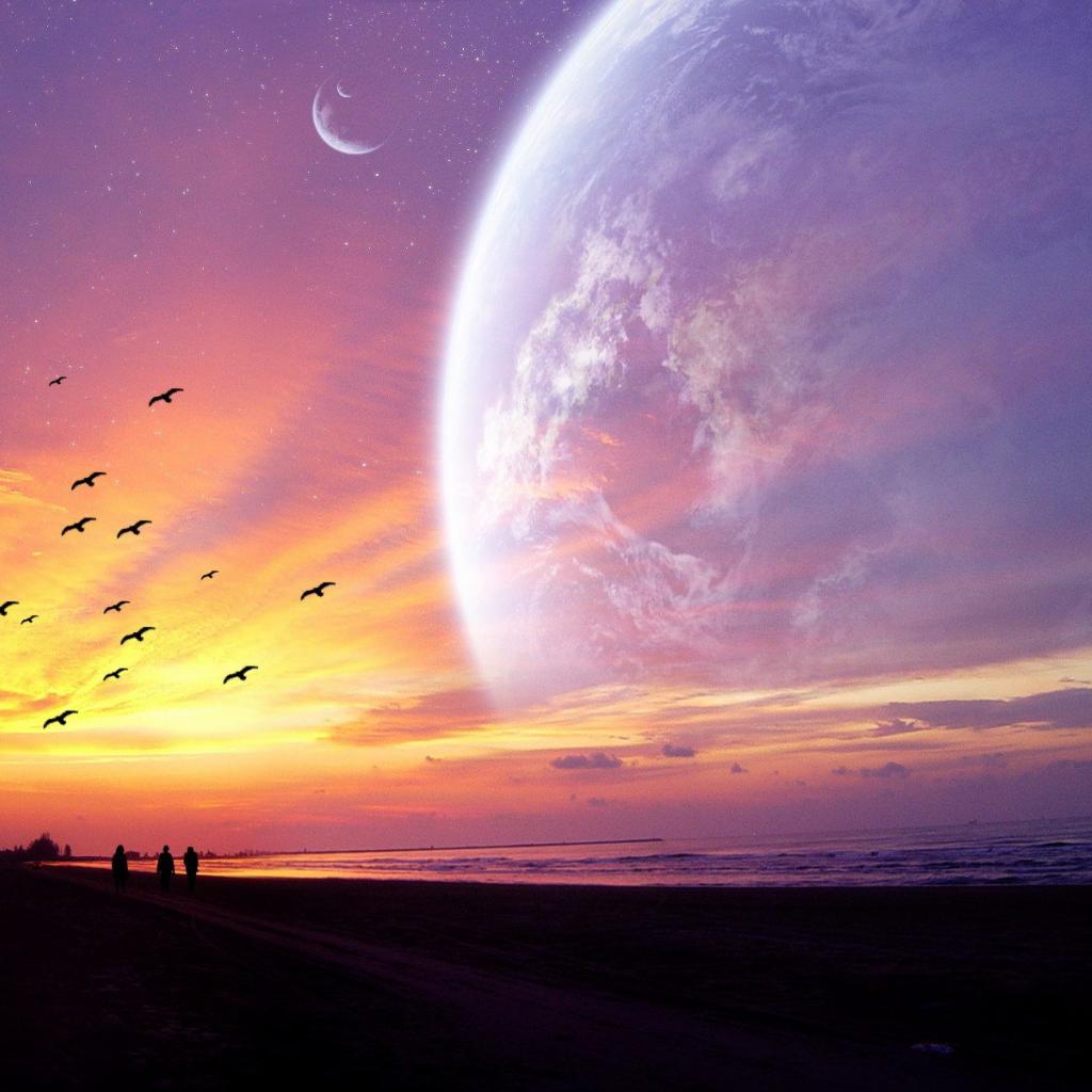 Обои Парень и девушка смотрят на закат в аниме DJ Max