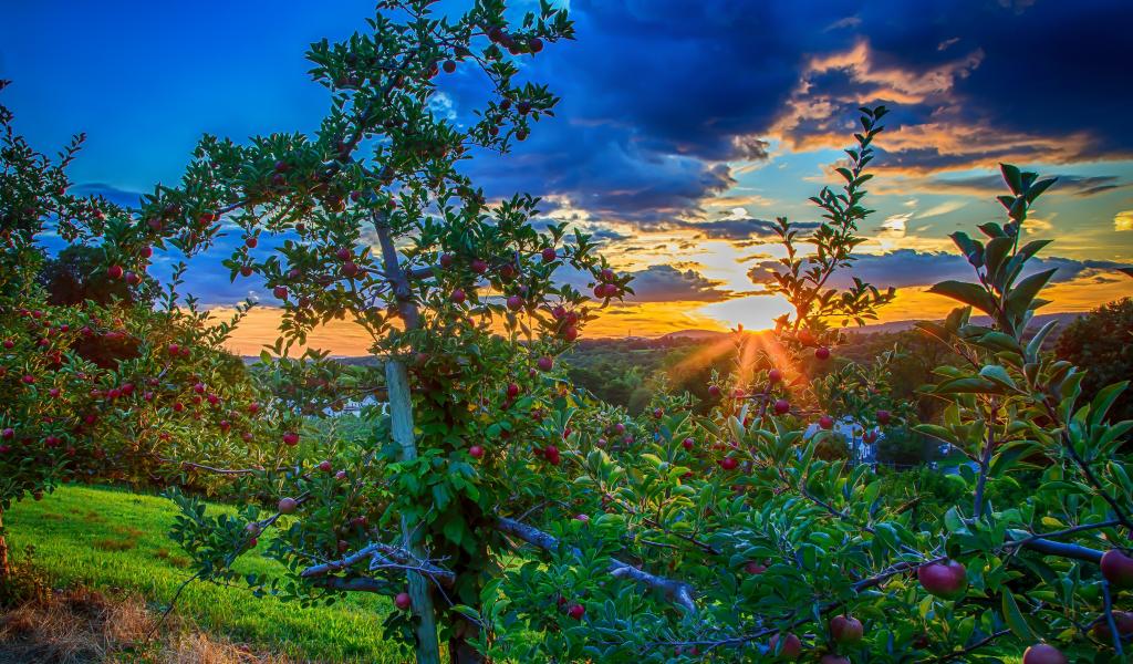 Обои Закат в яблоневом саду