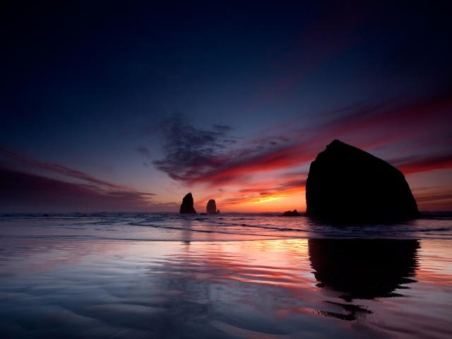 Обои Закат за скалами
