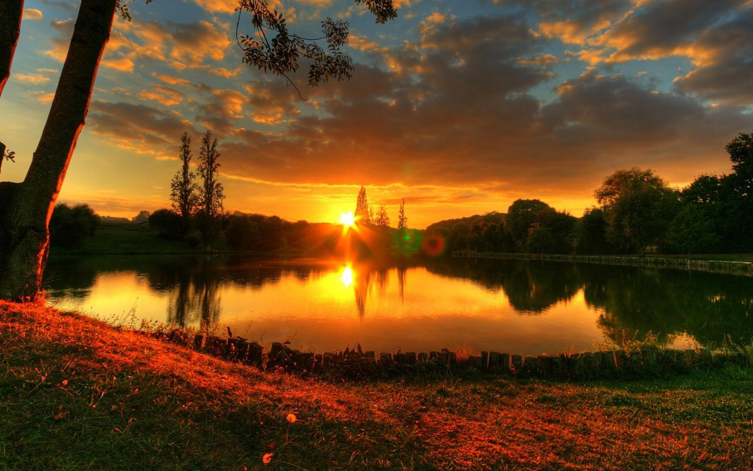 Обои Закат у лесного озера