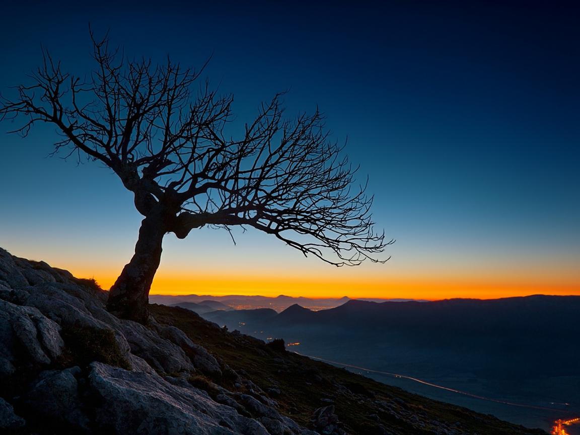 Обои Засохшее дерево на закате
