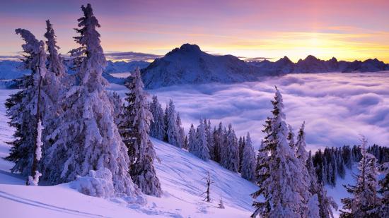 Обои Фиолетовый зимний закат