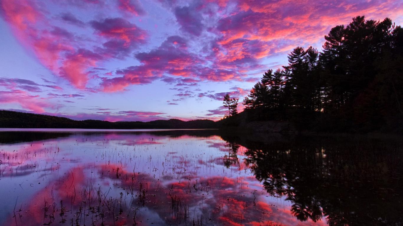 » Обои Розовый закат над озером