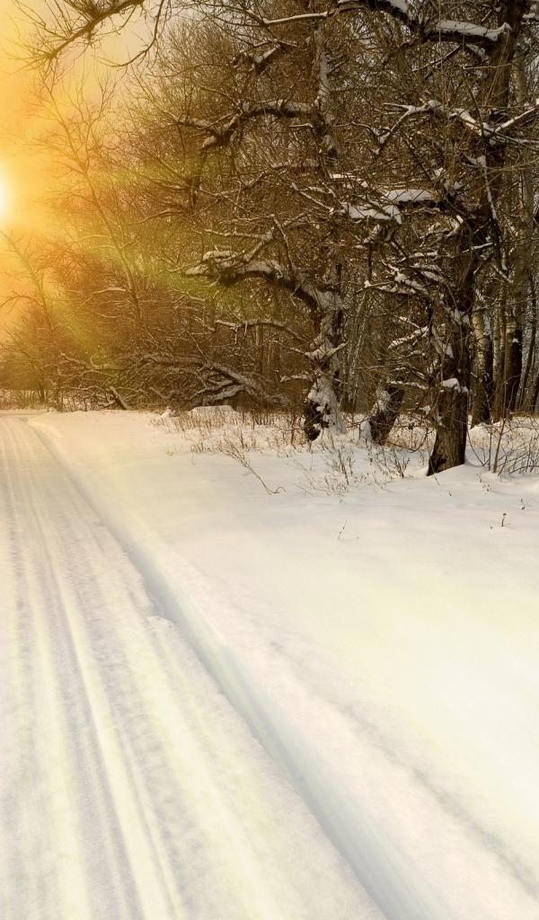 Обои Закат на зимней дороге