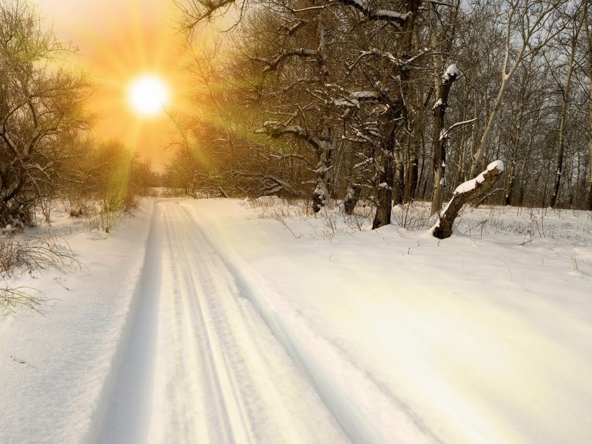 Обои Закат на зимней дороге