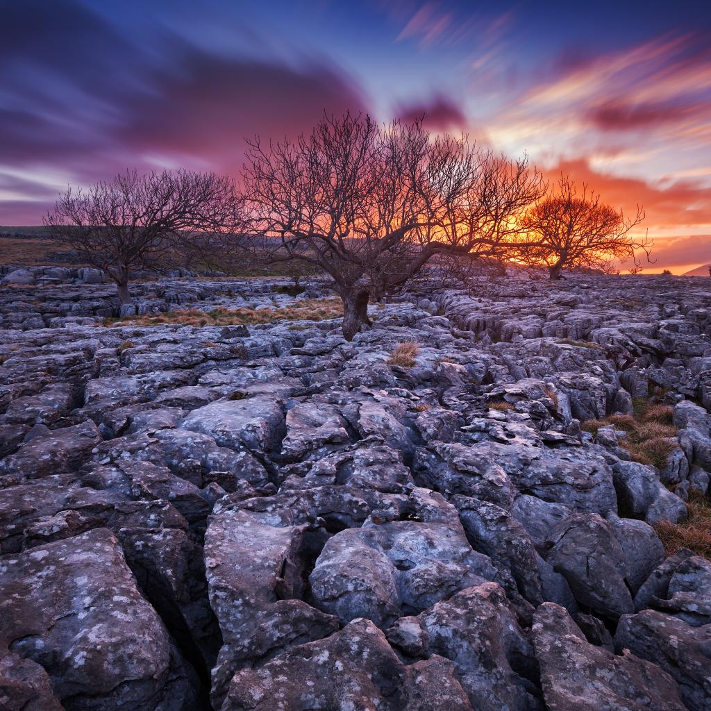 Обои Закат и сухие деревья
