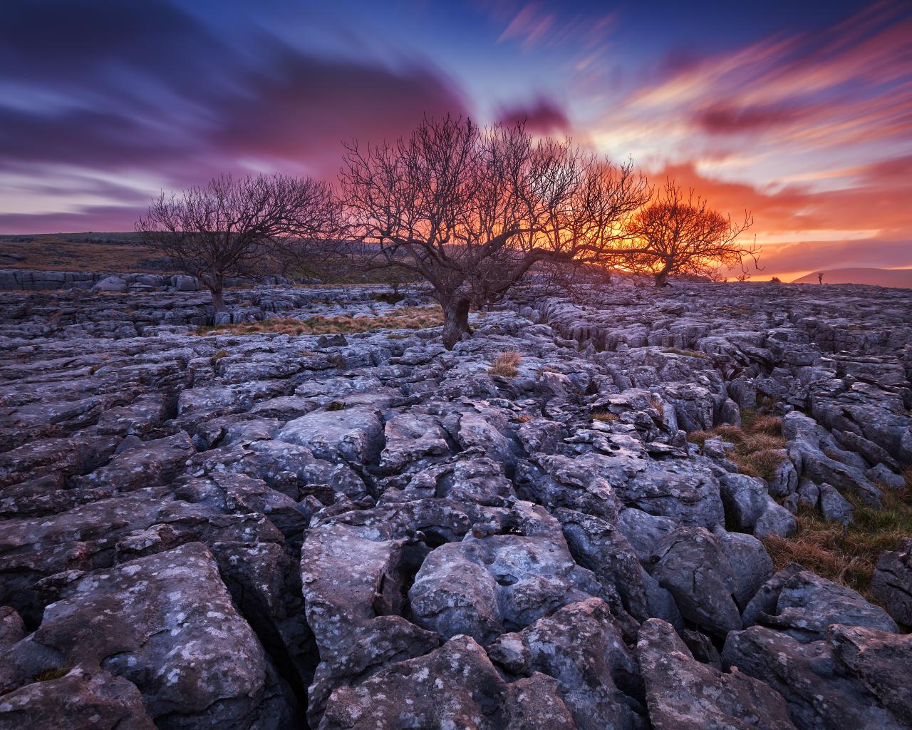 Обои Закат и сухие деревья
