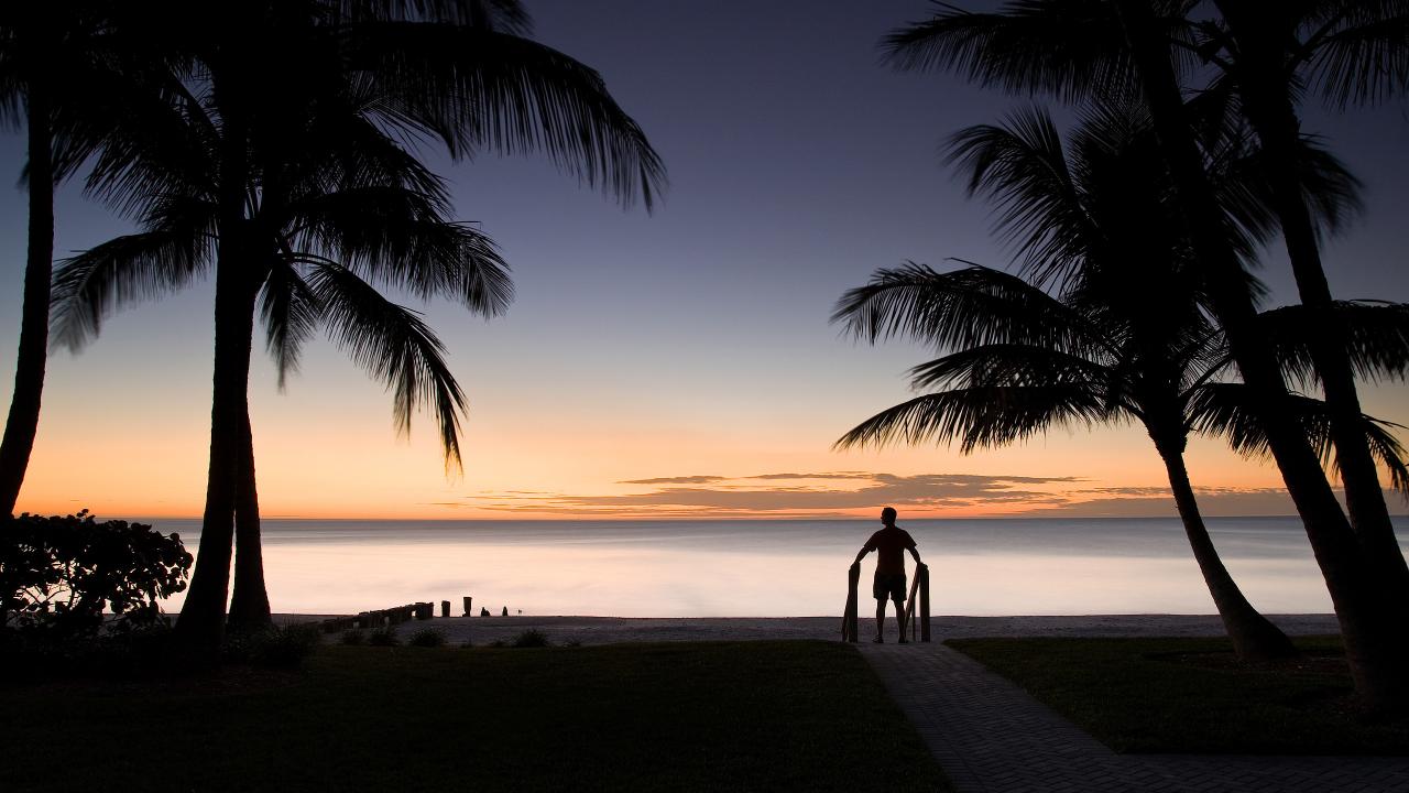 Обои Человек смотрит на закат