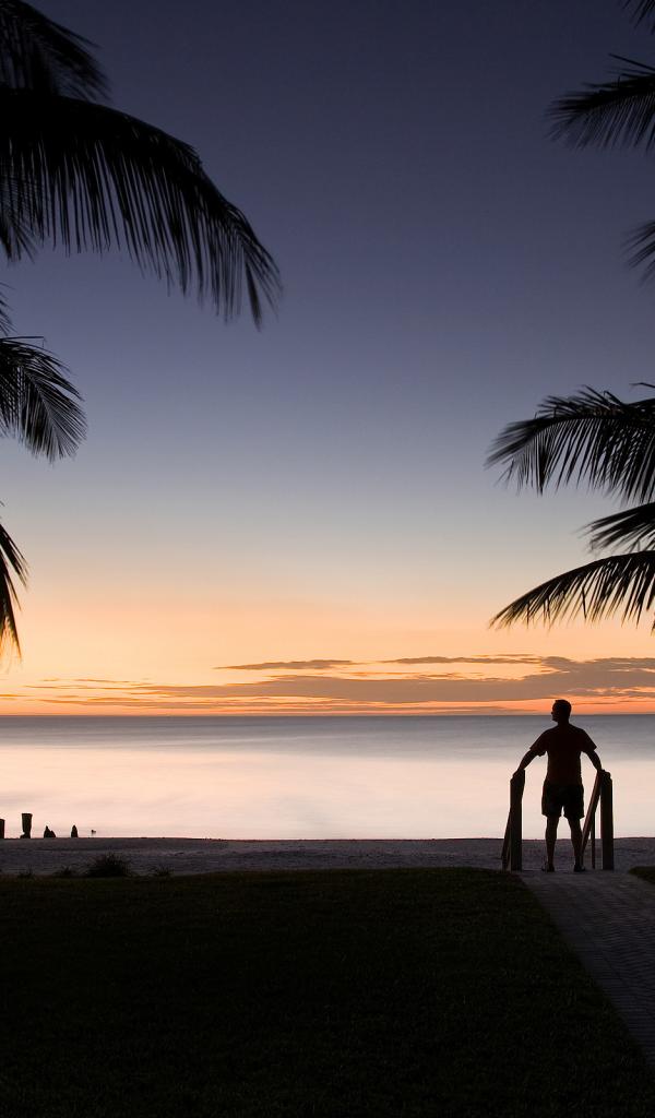 Обои Человек смотрит на закат