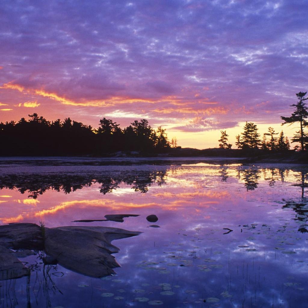 Обои Сиреневый закат над озером