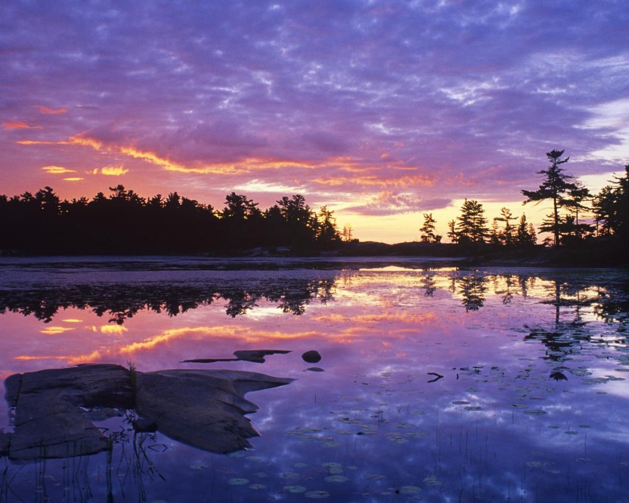 Обои Сиреневый закат над озером
