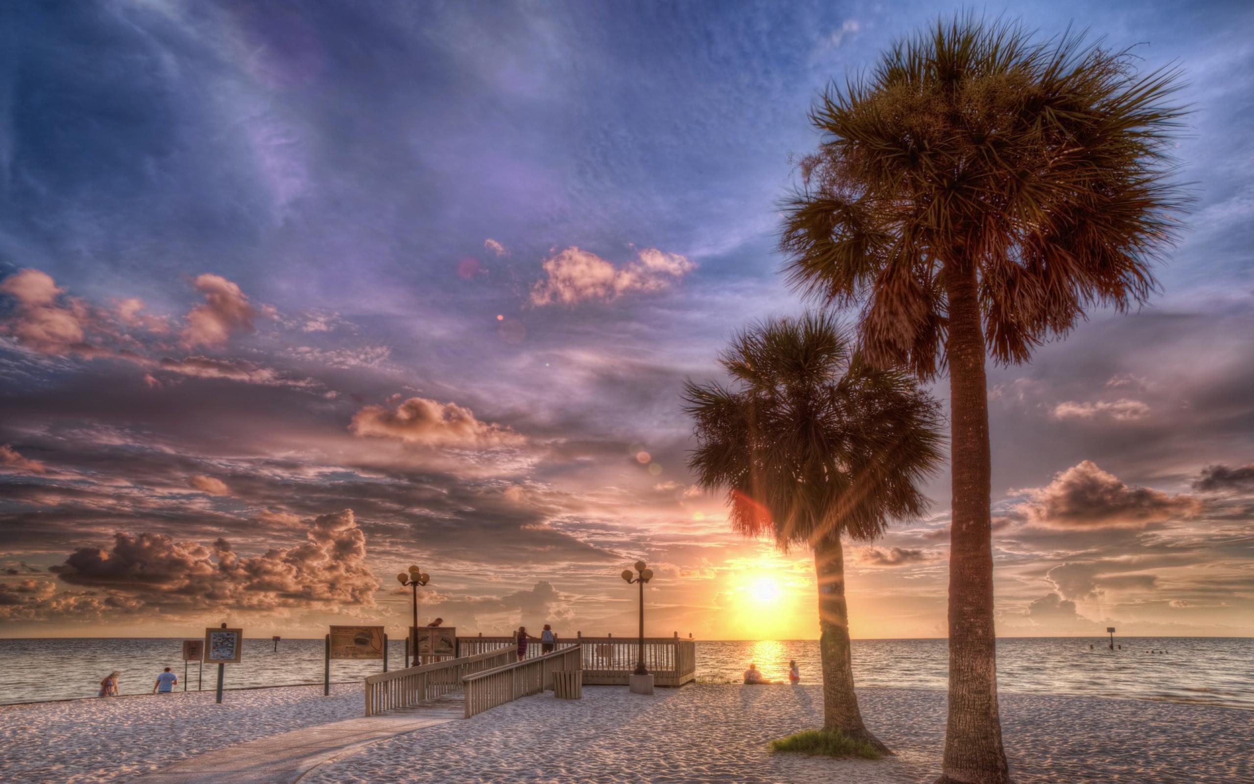 Обои Закат на пляже с пальмами