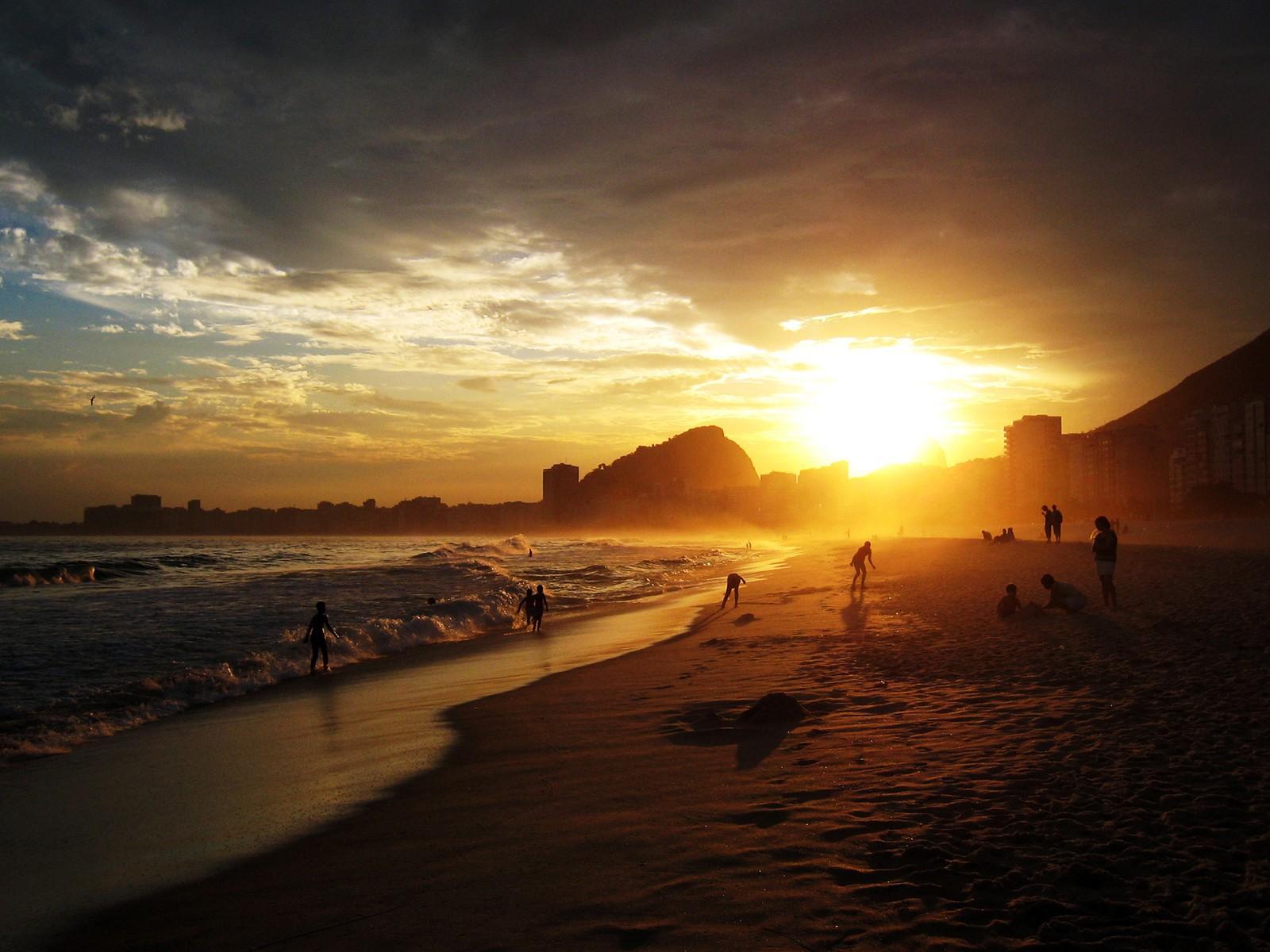 Обои Люди купаются на закате