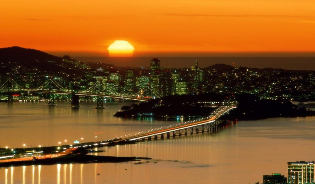 Обои закат над мегаполисом