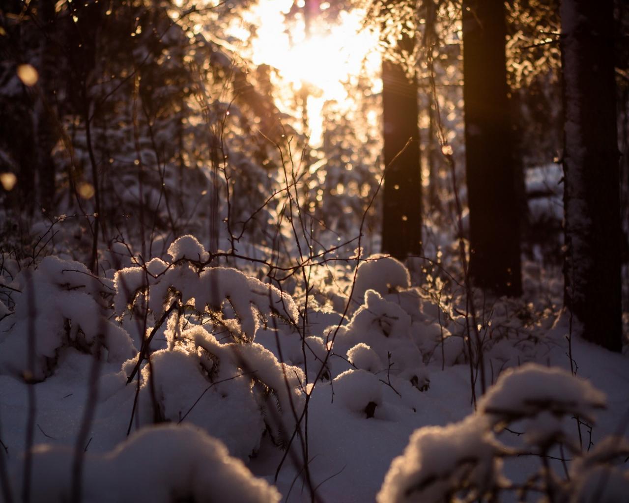 Обои Закат в заснеженном лесу