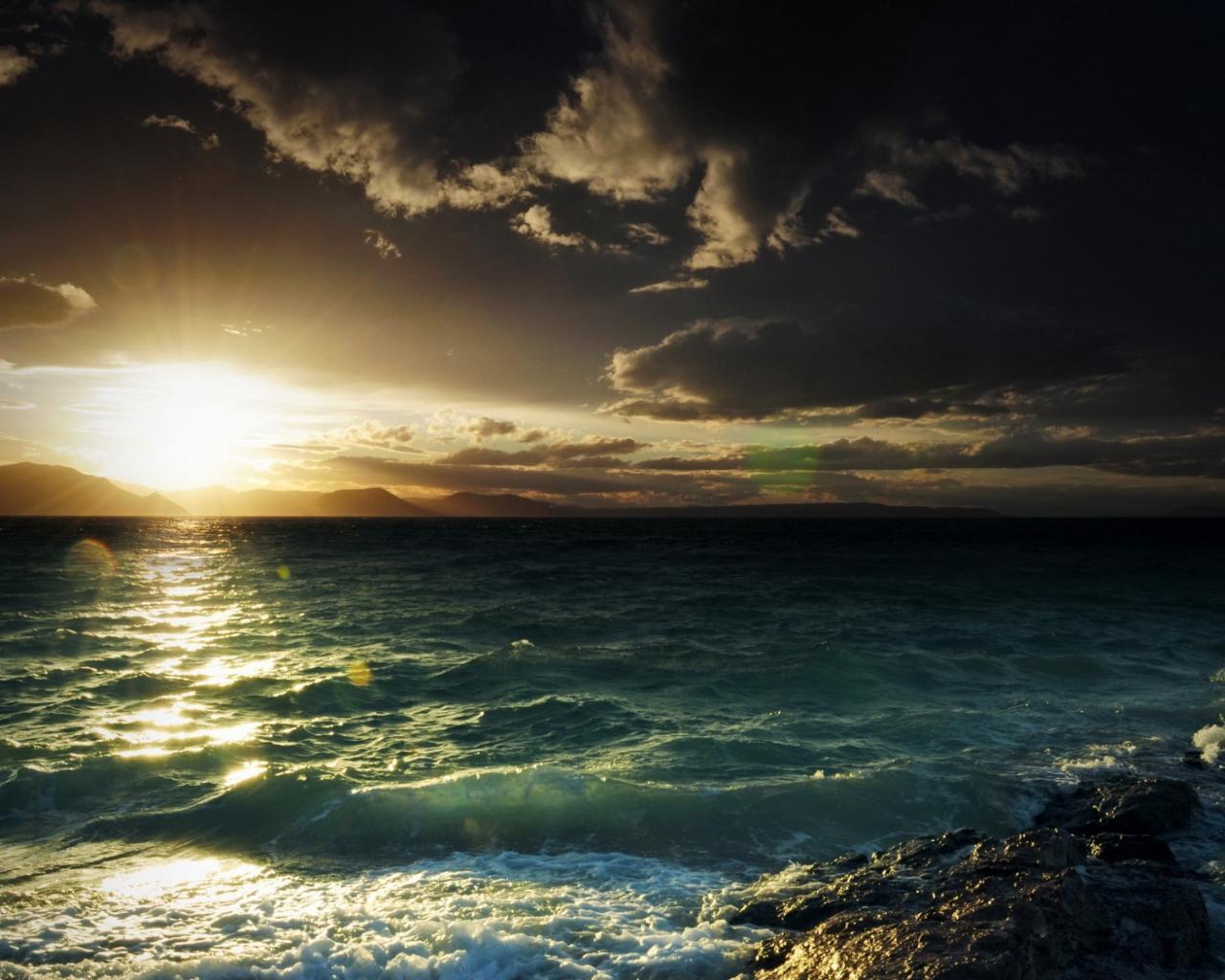 Обои Закат и волны