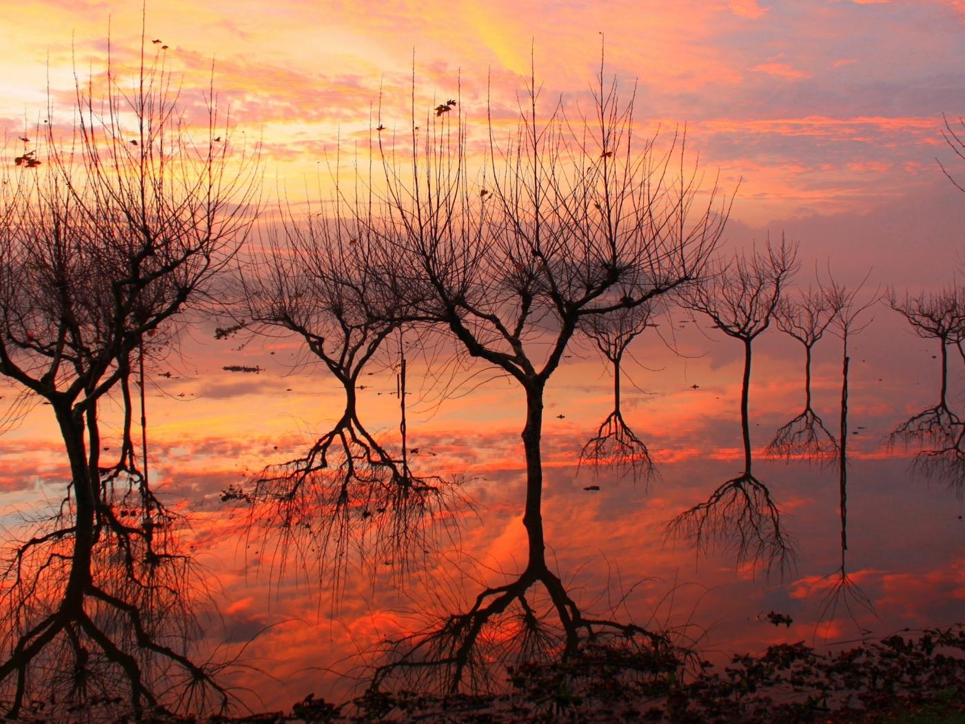 Обои Отражение деревьев на закате