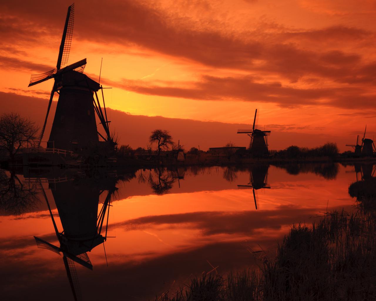 Обои Мельница на закате