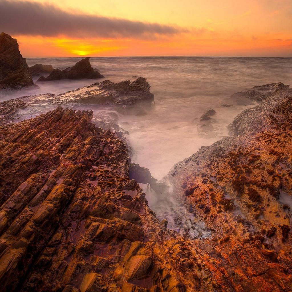 Обои Скалистый берег на закате