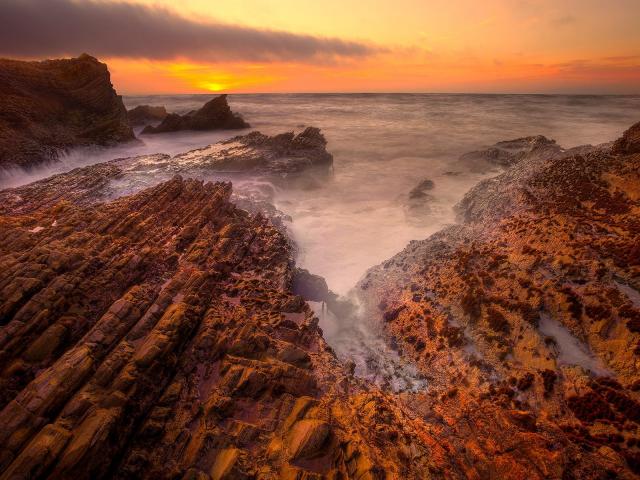 Обои Скалистый берег на закате