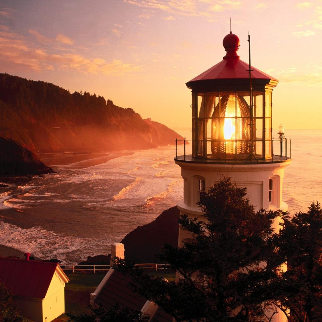 Обои Свет маяка на закате