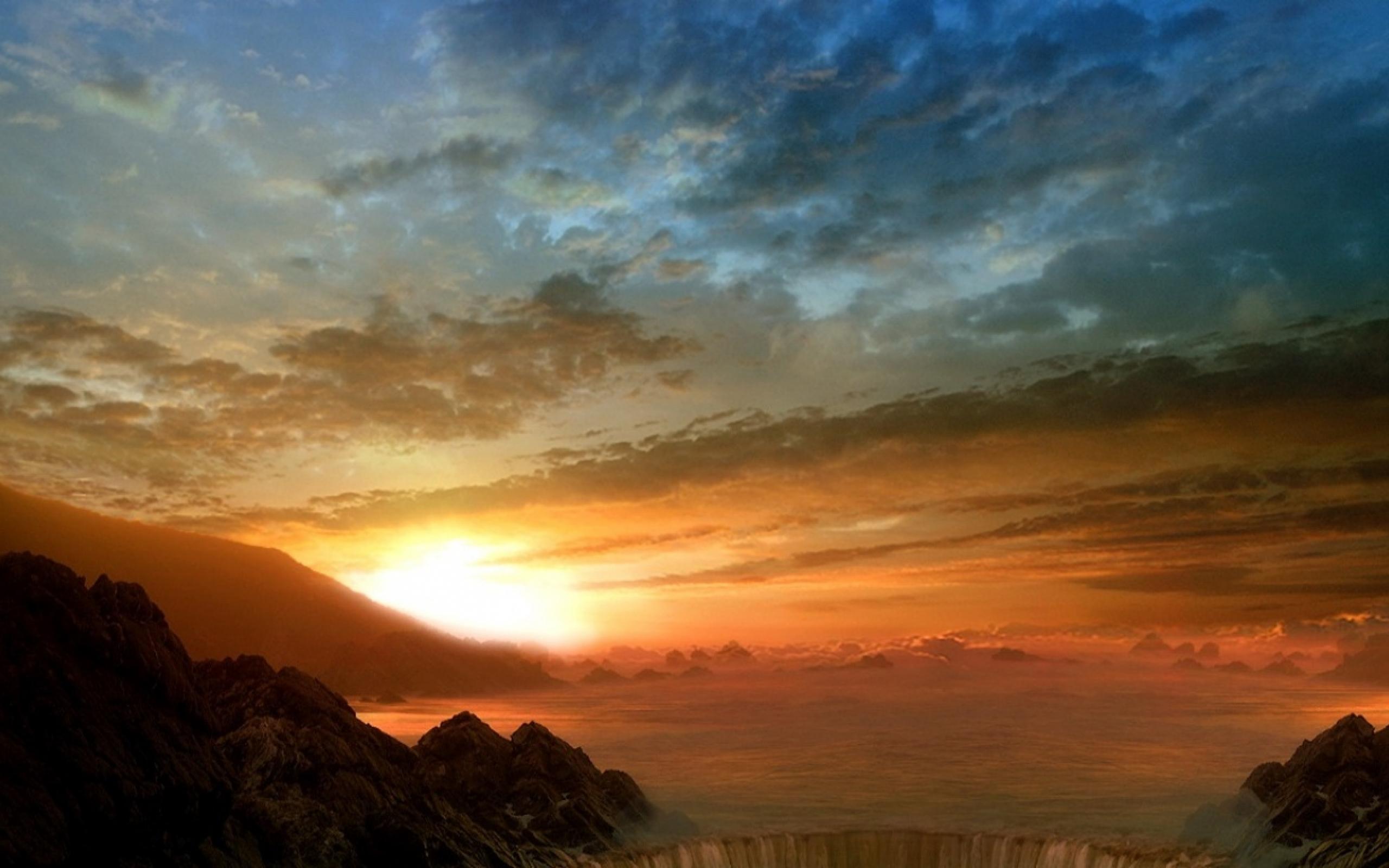 Обои Водопад на закате