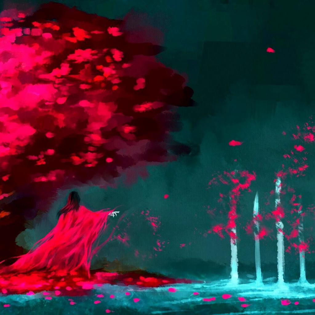 Обои Красная колдунья под деревом, художник NanFe
