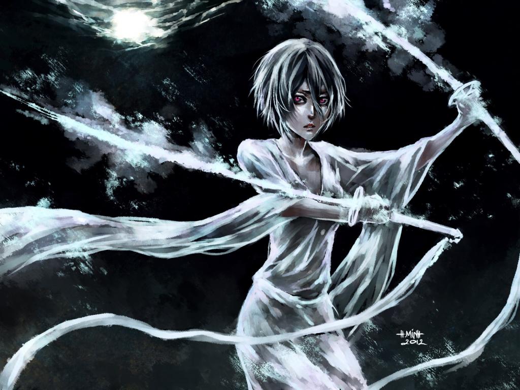 Обои Катаны из белого пламени, художник NanFe