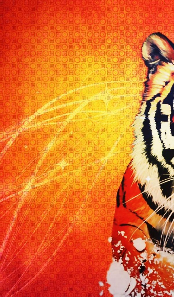Обои Оранжевый тигр на оранжевом фоне