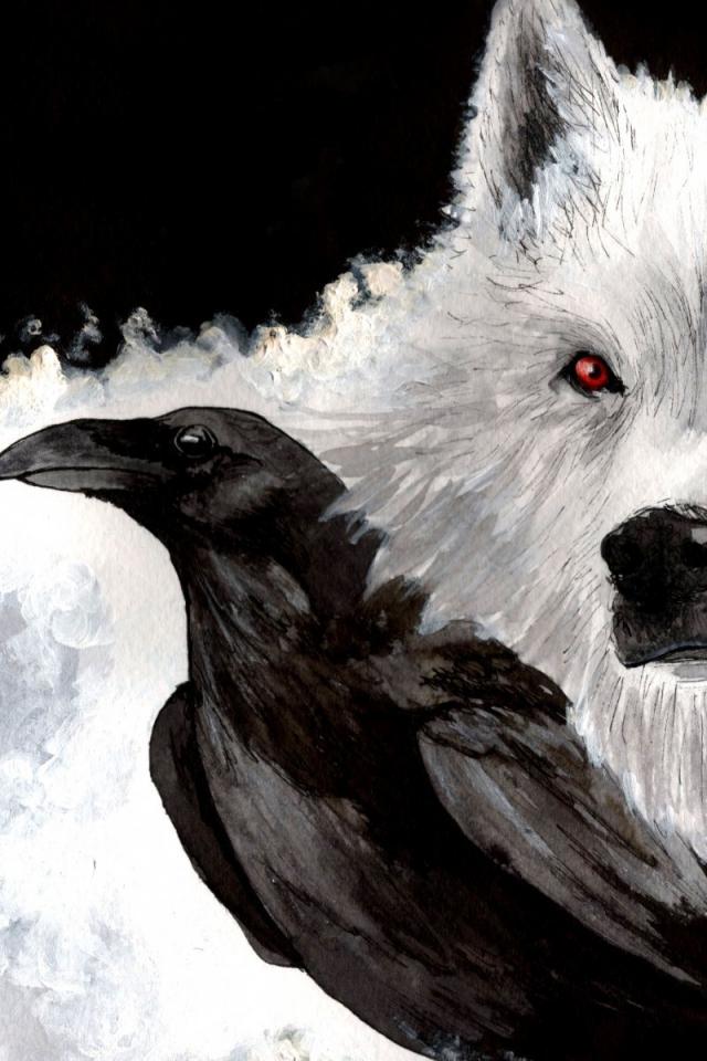 Обои Белый волк и ворон