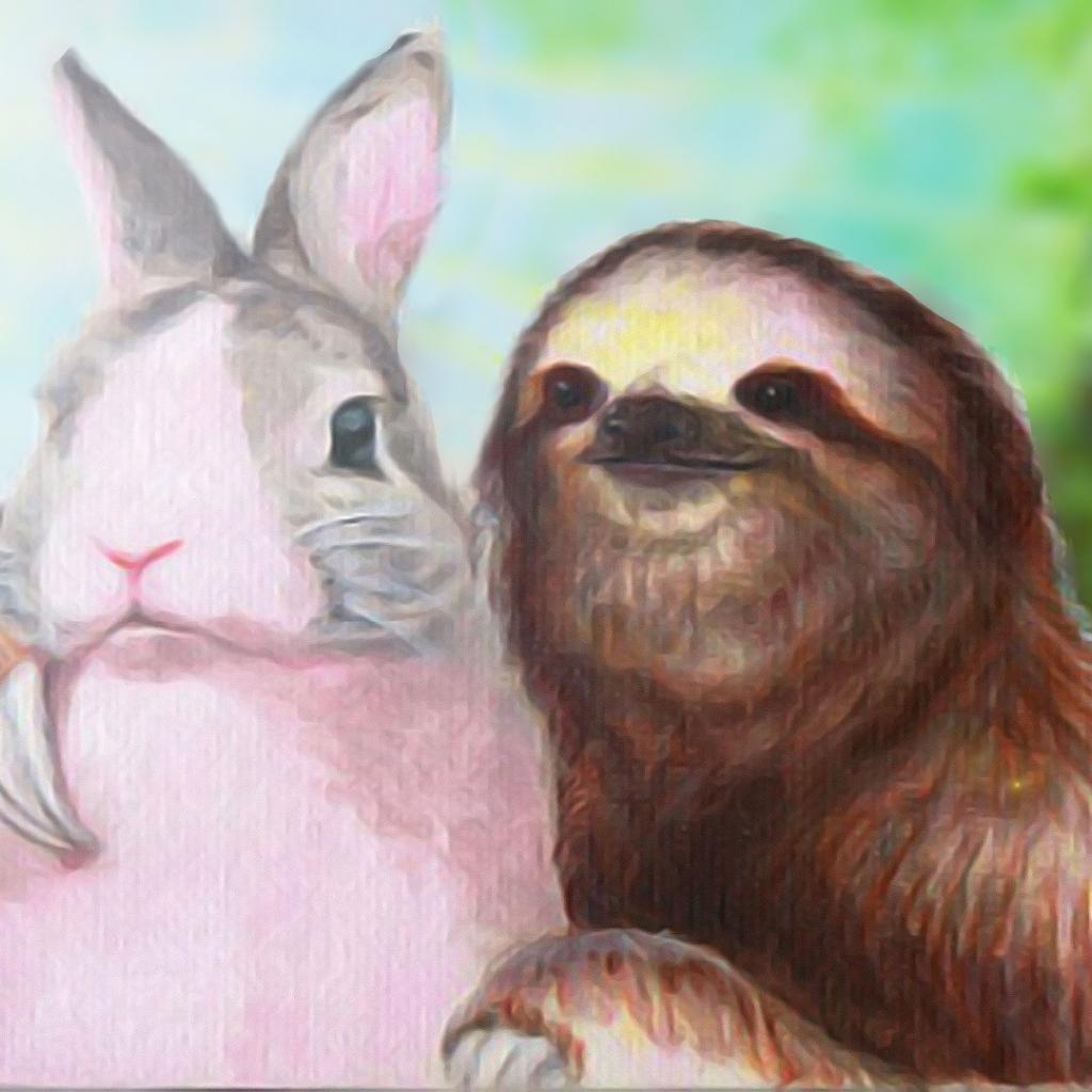 Обои Ленивец обнимает кролика