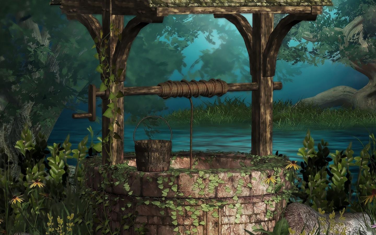 Обои Каменный колодец у реки