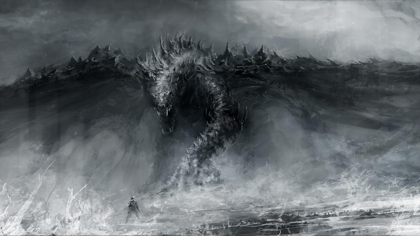 Обои Арт Черный дракон