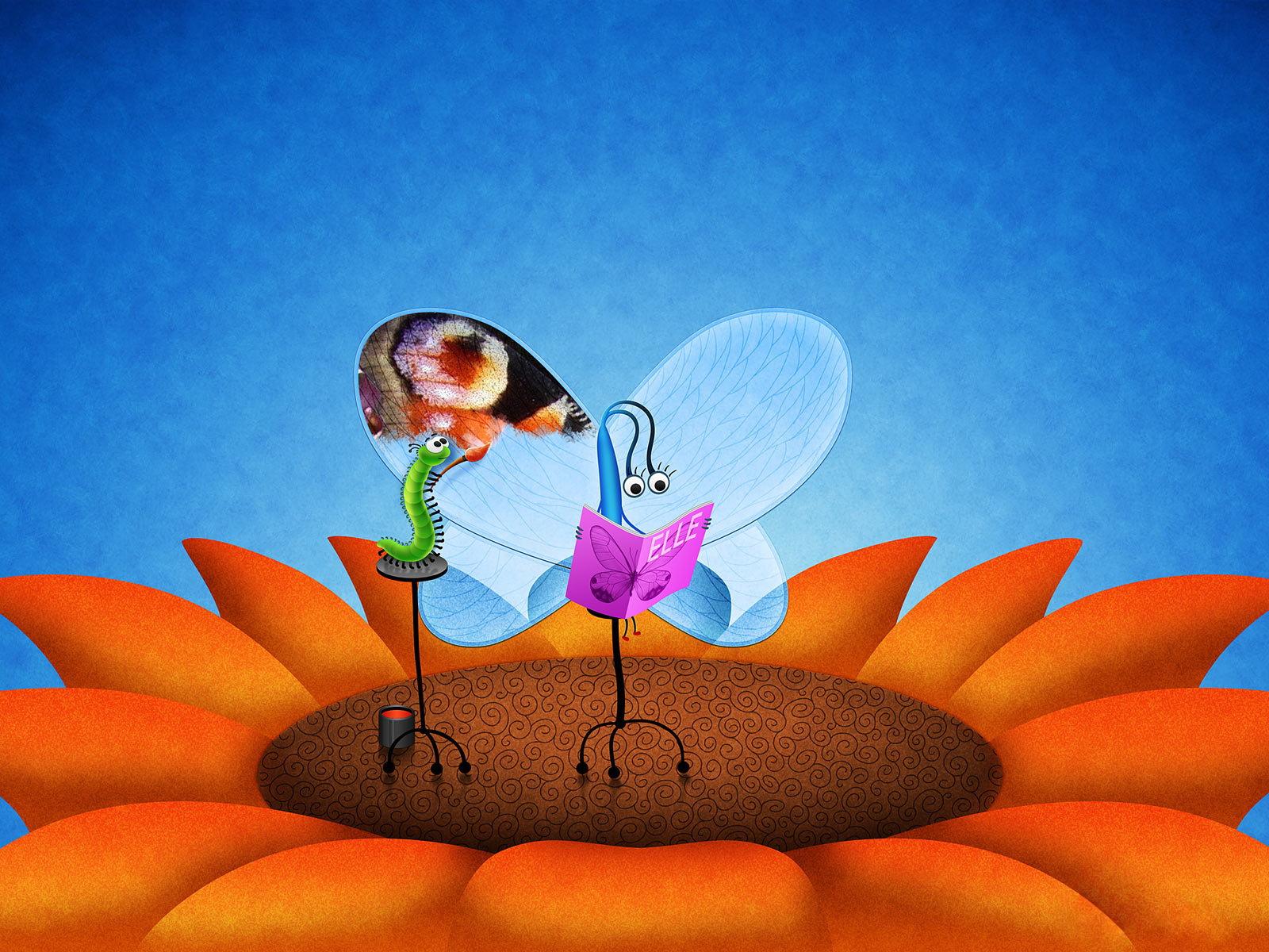 Обои Гусеница раскрашивает бабочку