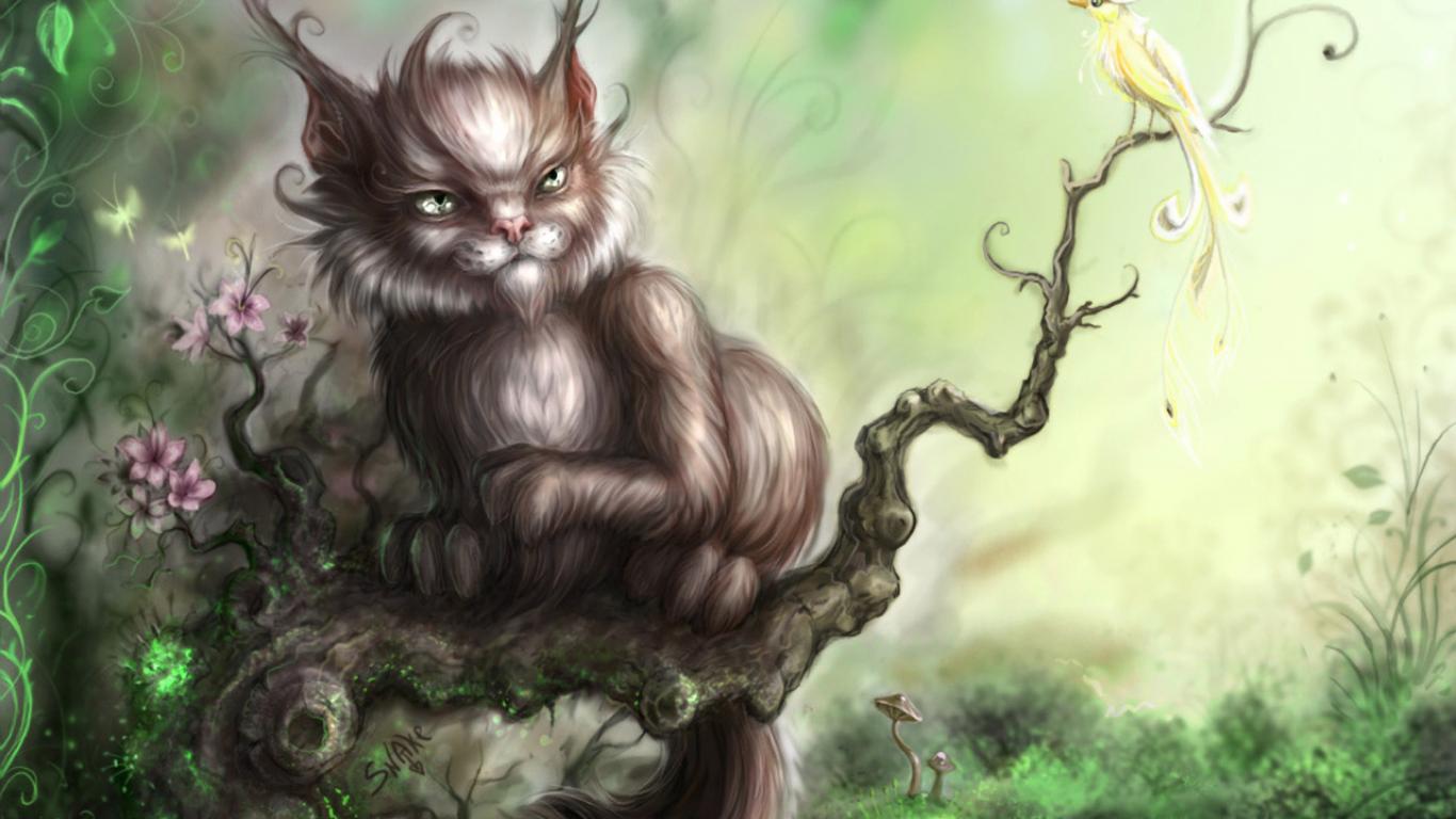 » Обои Сказочный кот и птица