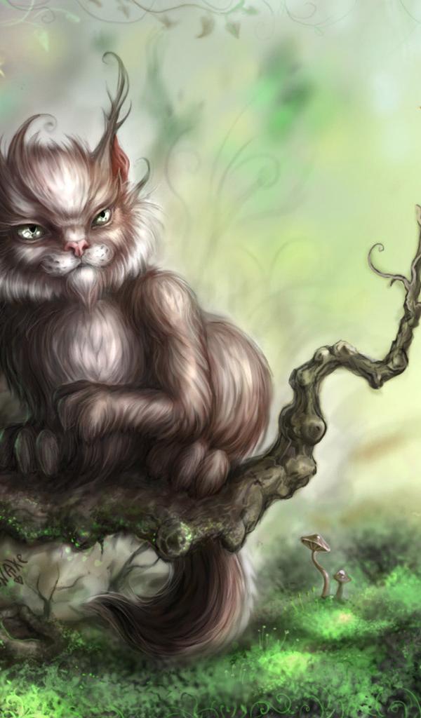Обои Сказочный кот и птица