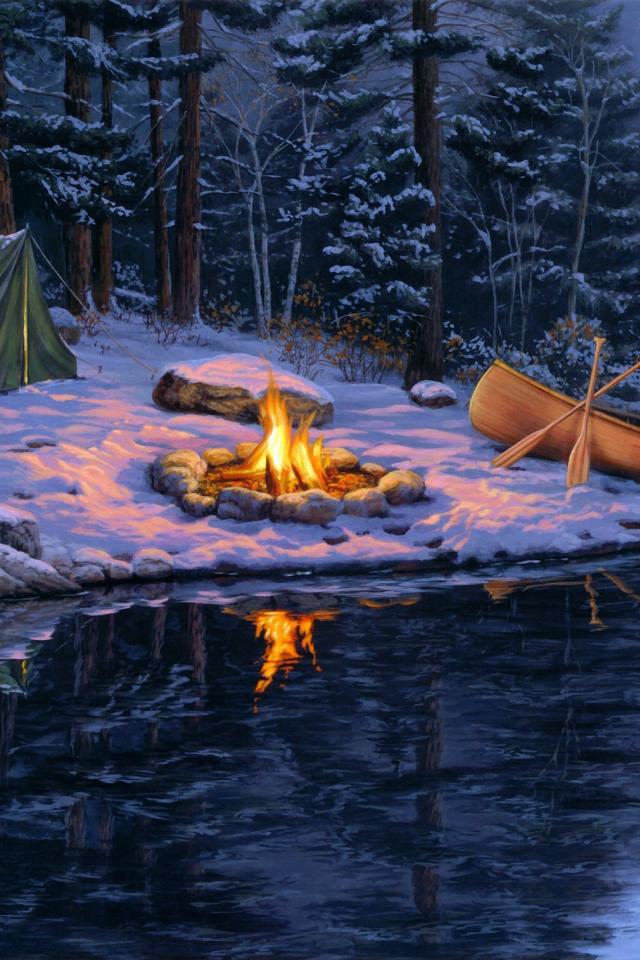 Обои Костер на берегу реки