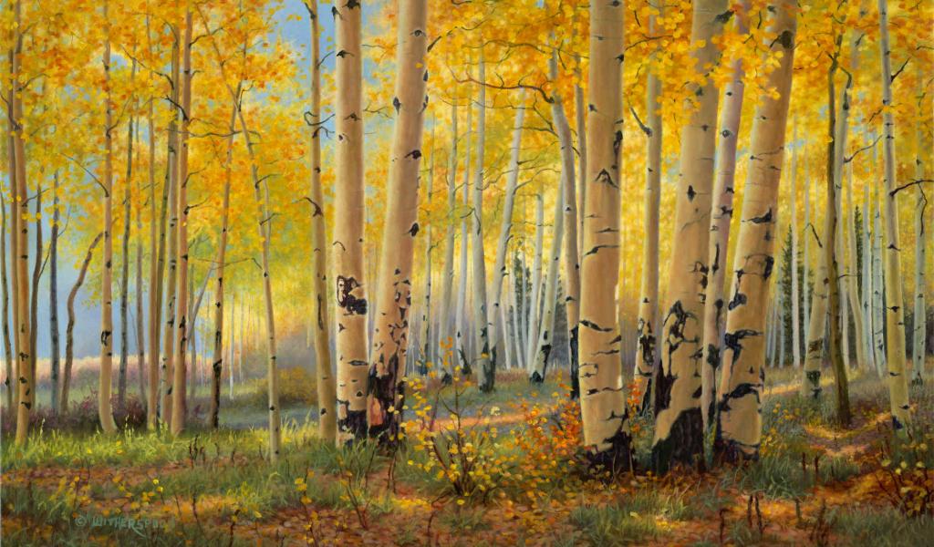 Обои Березовая роща осенью