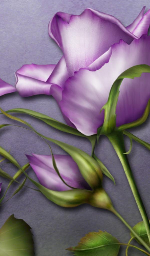 Обои Фиолетовые розы и бабочка