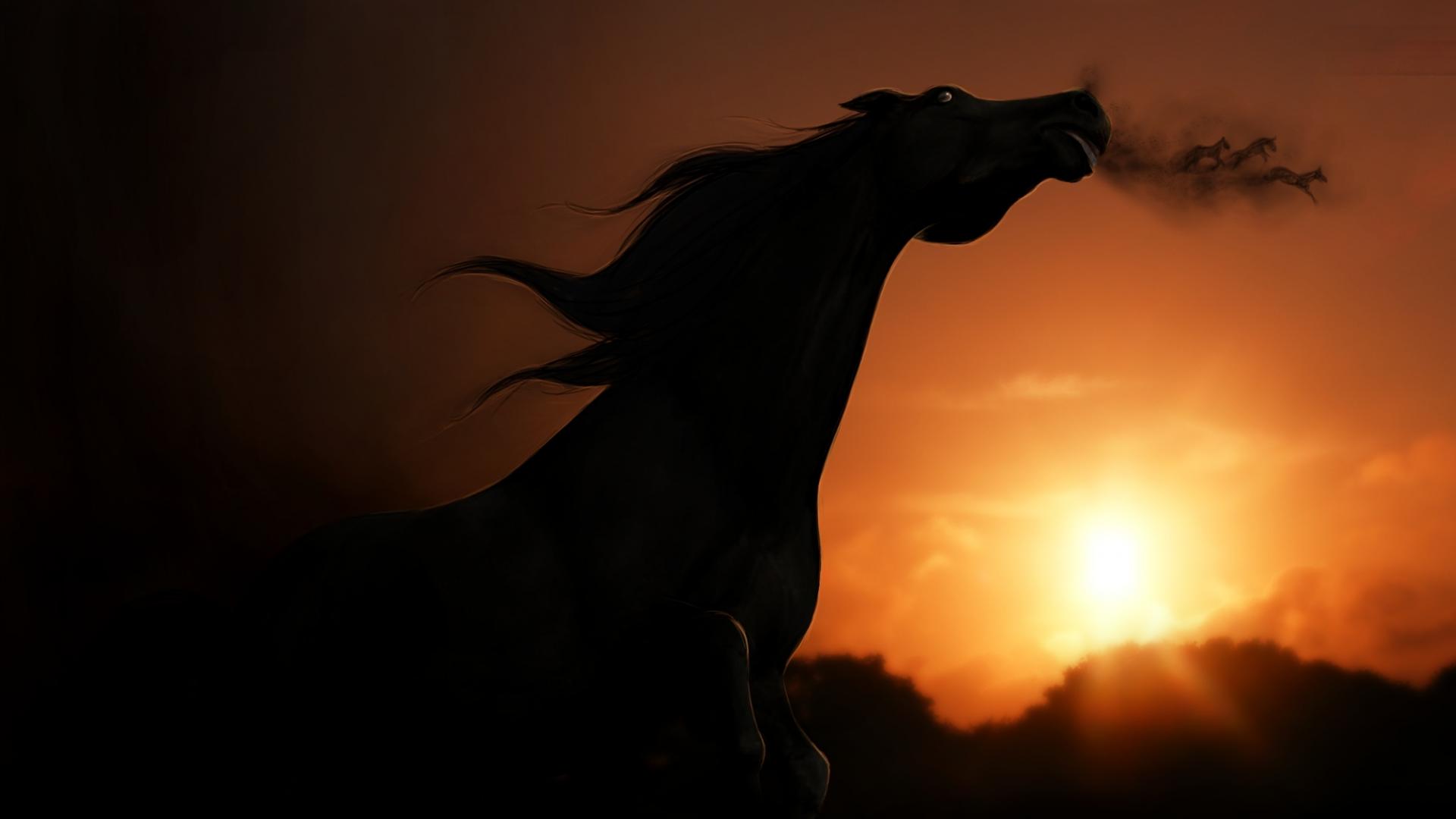 Обои Силуэт лошади