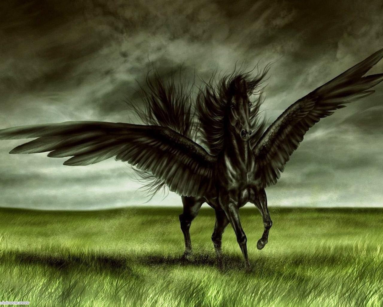 Обои Черный крылатый конь Пегас