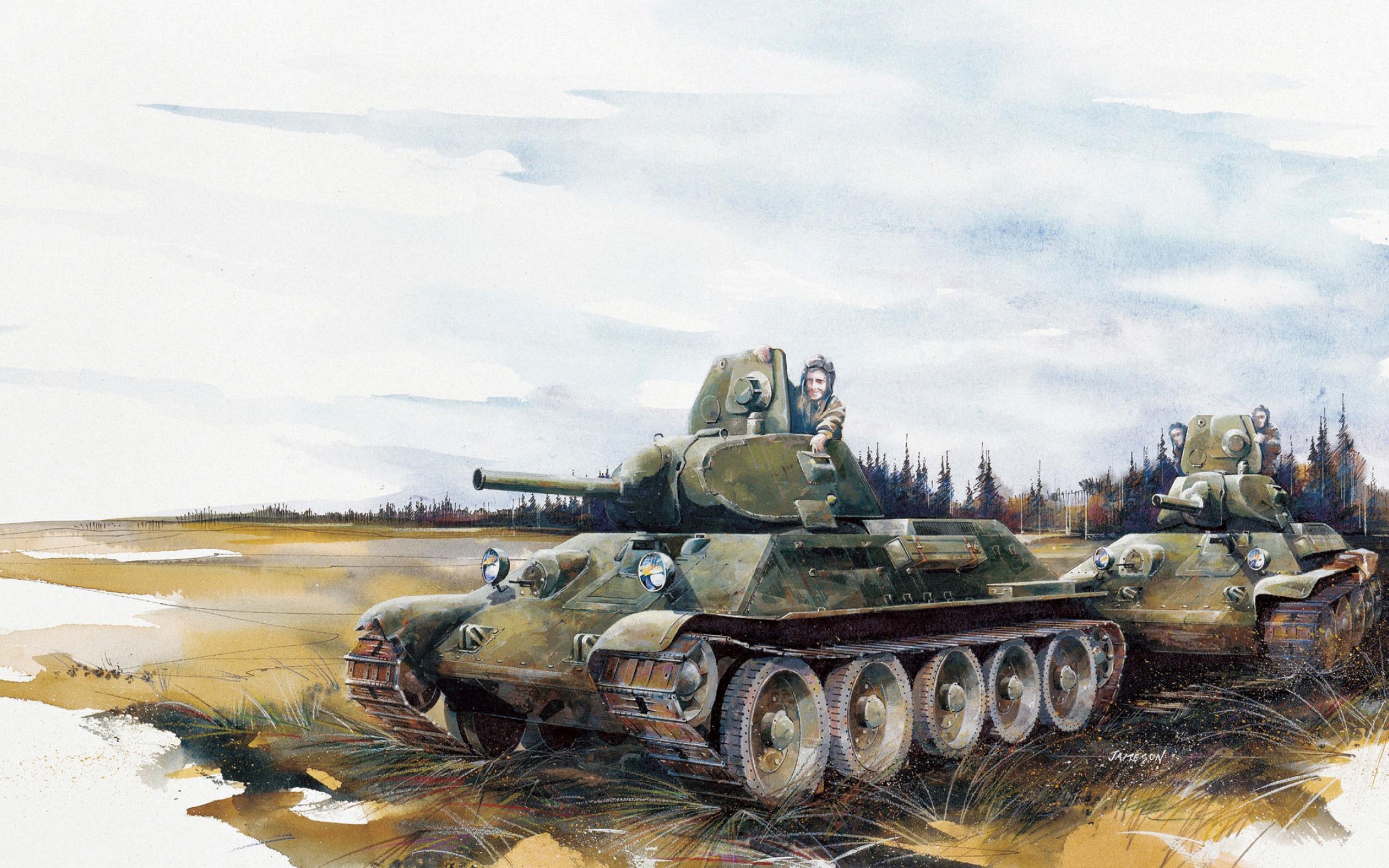 Обои Трава, воины, Танки