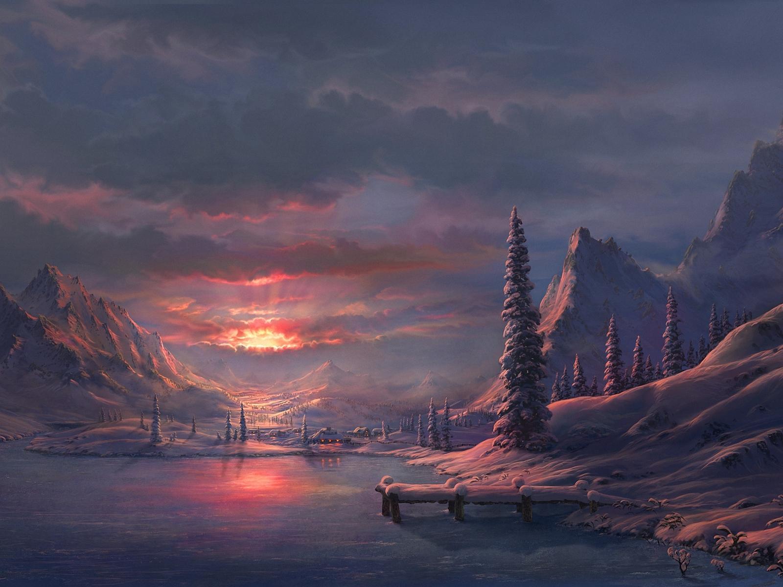 Обои Снег, Озеро, Успокаивающие