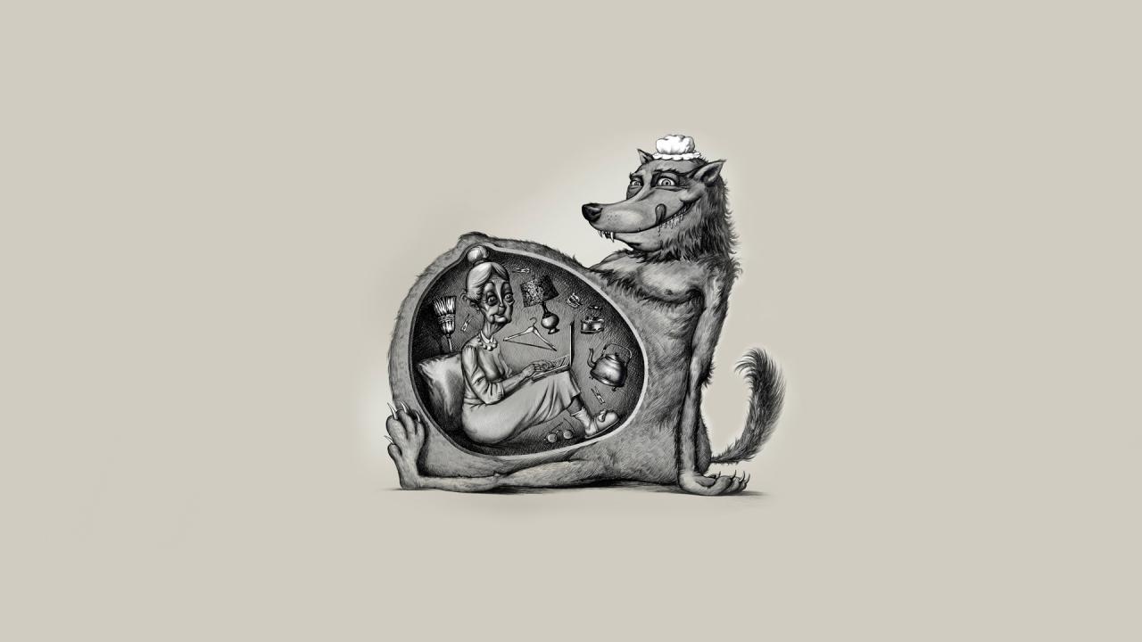 Обои ноутбук, волк, красная шапочка, бабушка