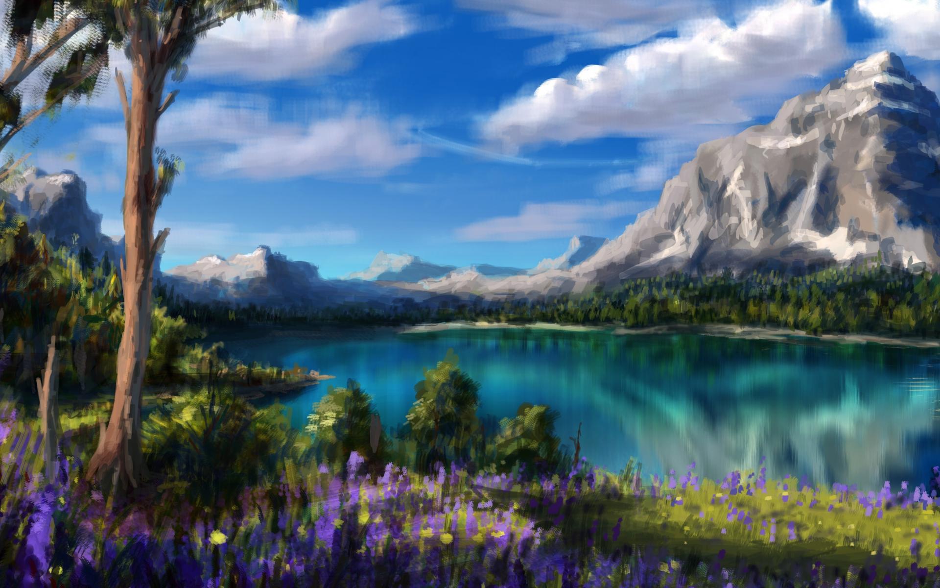 Обои Деревья, Пейзаж, Озеро, Успокаивающие