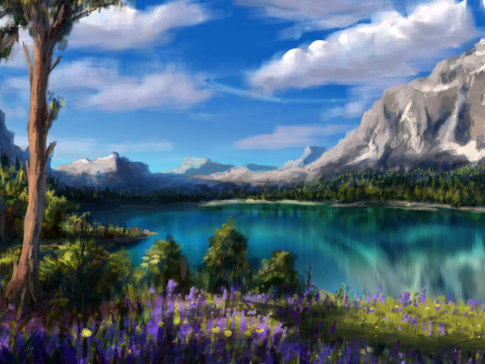 Обои Деревья, Пейзаж, Озеро, Успокаивающие