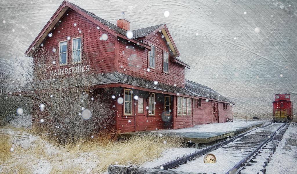 Обои Снег, стиль, Поезд, часы
