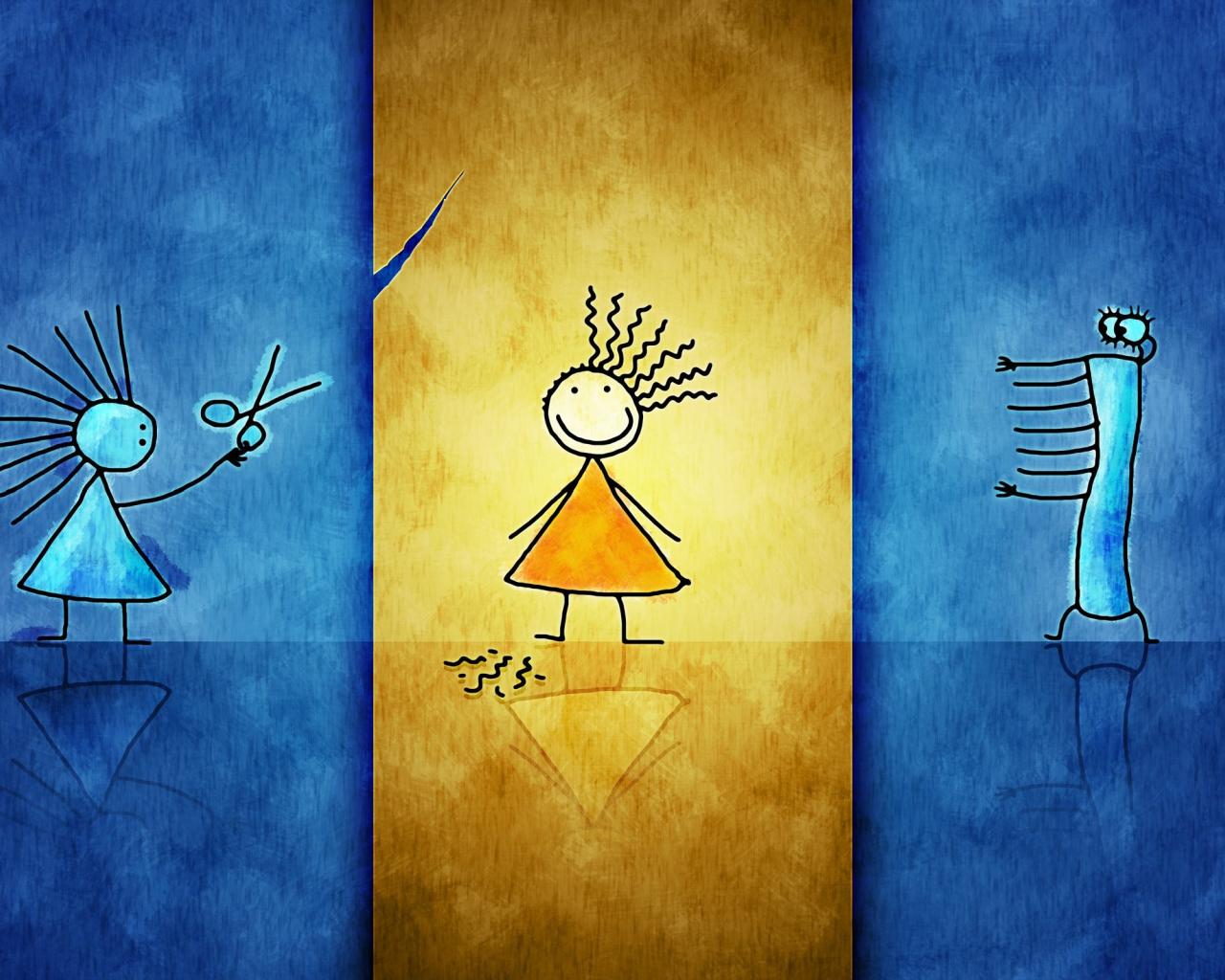 Обои Девочка, Абстракция, Ножницы